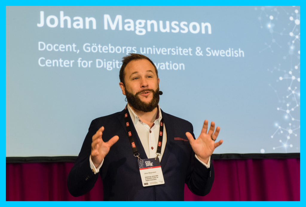 Johan Magnusson är professor vid Institutionen för tillämpad it vid Göteborgs universitet och föreståndare för Swedish Center for Digital Innovation. Han tog bland annat upp behovet av nya perspektiv på verksamheten och en helt annan styrning än idag för att den offentliga sektorn ska kunna utveckla sin verksamhet med hjälp av digitala lösningar.